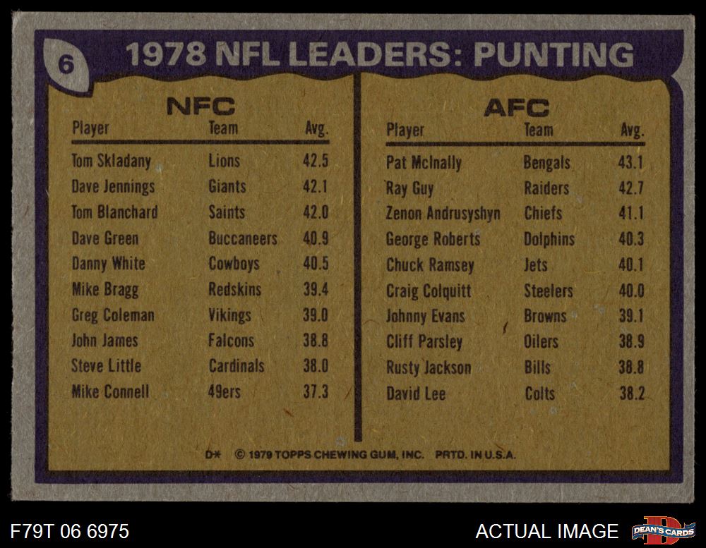 1979 Topps #6 - Tom Skladany / Pat McInally Punting Leaders 2.5 - GD+