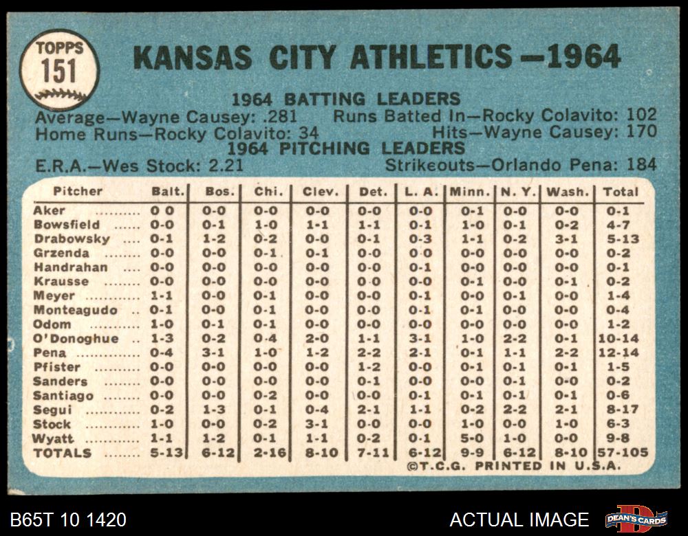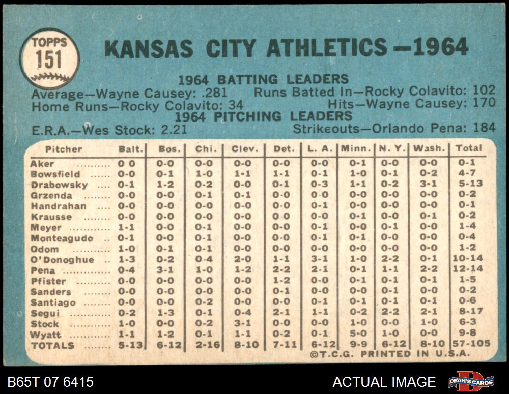 1965 Topps #151 Athletics Team 7 - NM