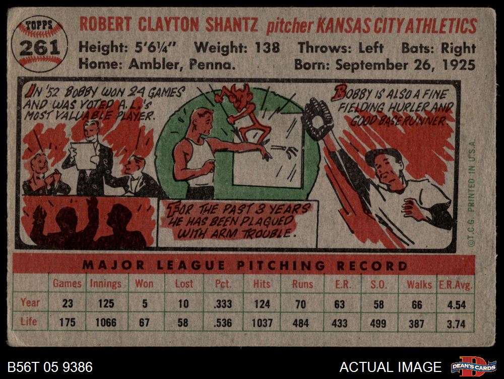 1956 Topps #261 Bobby Shantz 1.5 - FAIR