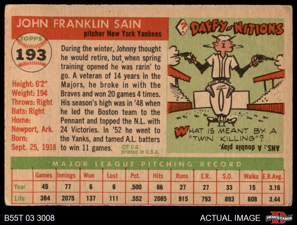 1955 Topps #193 Johnny Sain 1.5 - FAIR
