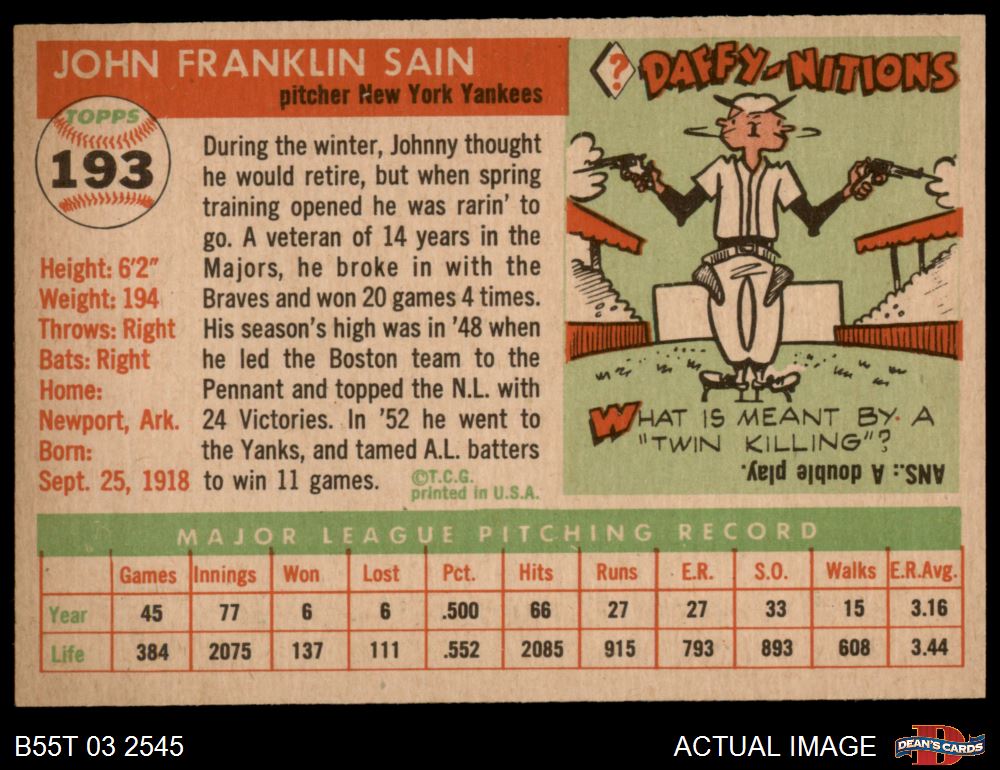 1955 Topps #193 Johnny Sain 6 - EX/MT