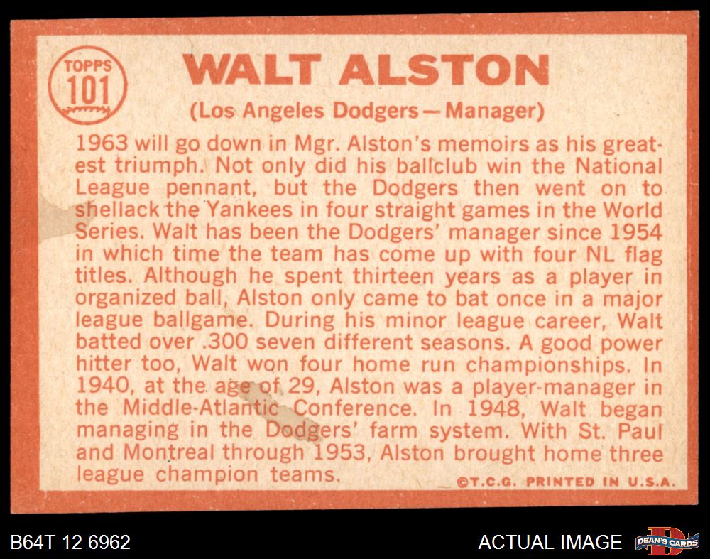 1964 Topps #101 Walter Alston 5 - EX