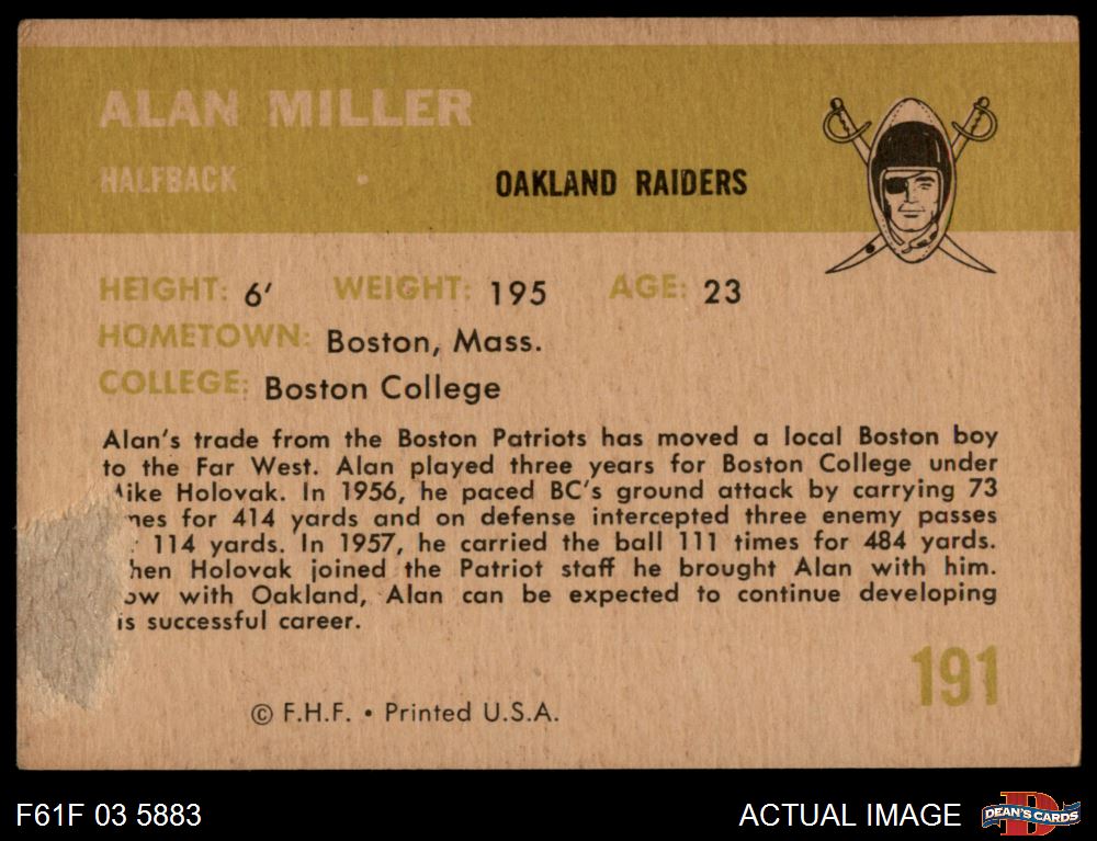 1961 Fleer #191 Alan Miller 1 - POOR