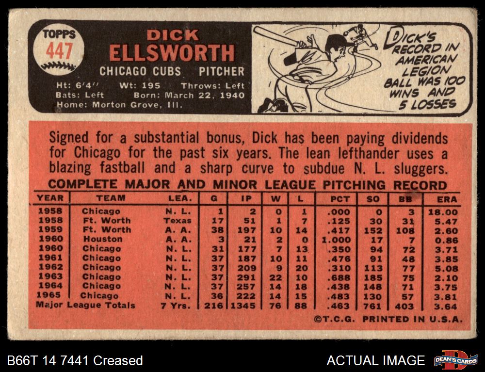 1966 Topps #447 Ken Hubbs in Photo Dick Ellsworth Front Thumbnail