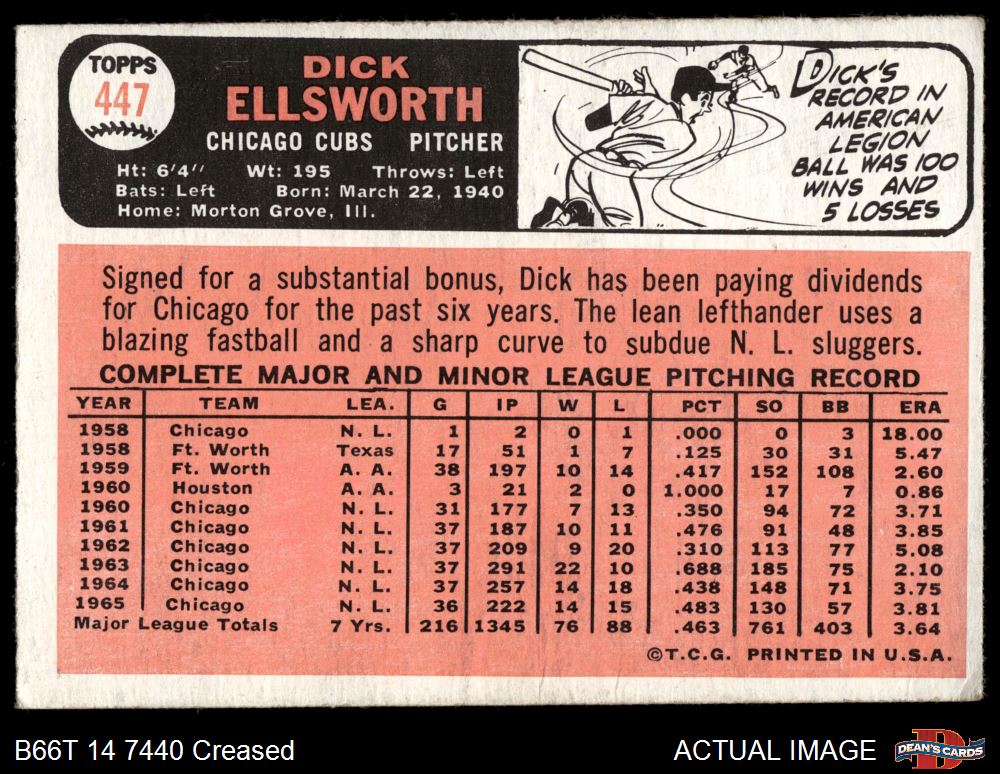 1966 Topps #447 Ken Hubbs in Photo Dick Ellsworth Front Thumbnail