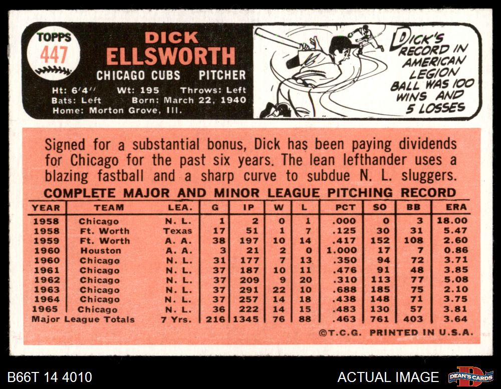 1966 Topps #447 Ken Hubbs in Photo Dick Ellsworth 7.5 - NM+
