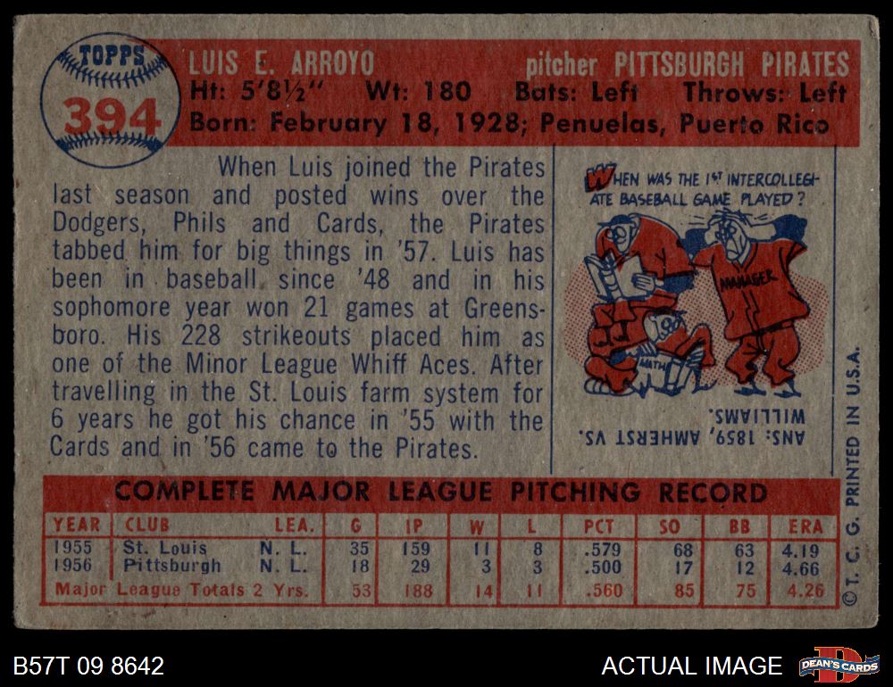 1957 Topps #394 Luis Arroyo 3 - VG
