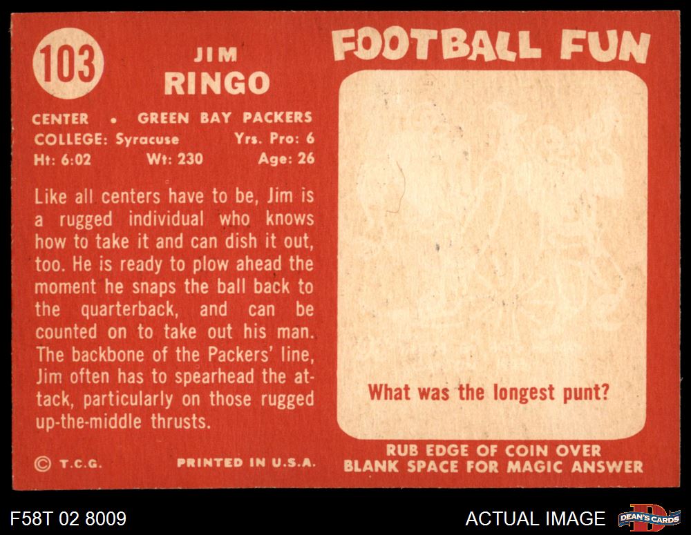 1958 Topps Football Cards (1,378 available)1958 Topps Packers (103 available)
