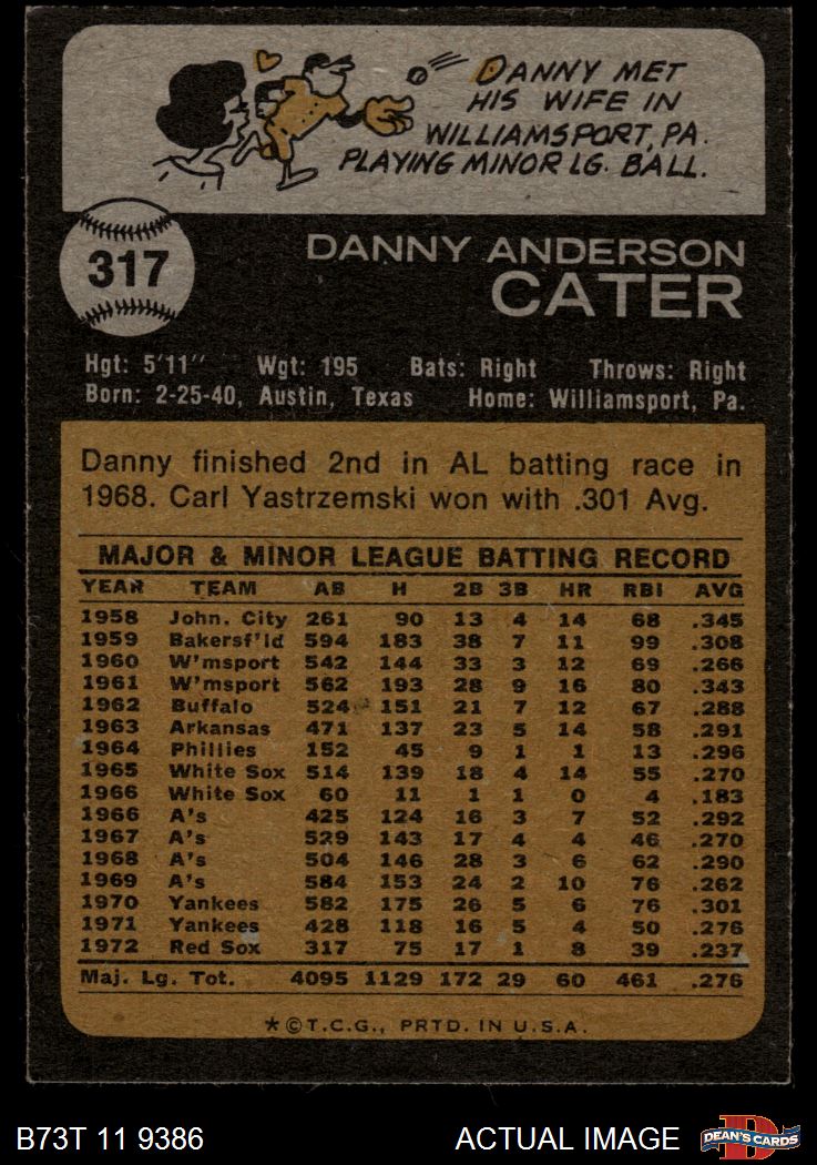 1973 Topps #317 Danny Cater