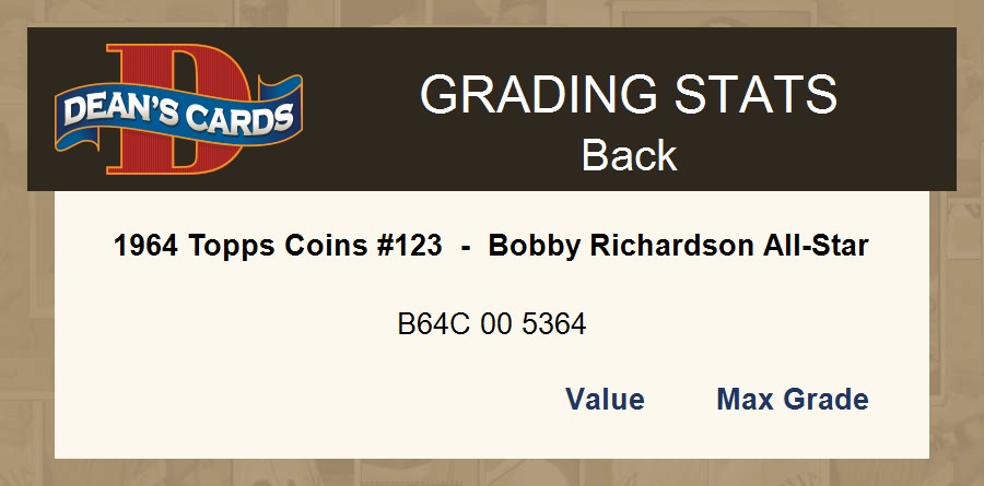 1964 Topps Coins #123 - Bobby Richardson All-Star 4 - VG/EX