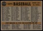 1960 Topps #513  Cubs Team Checklist Front Thumbnail