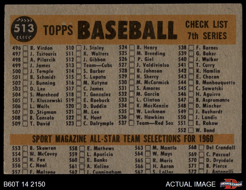 1960 Topps #513 Cubs Team Checklist 2 - GOOD
