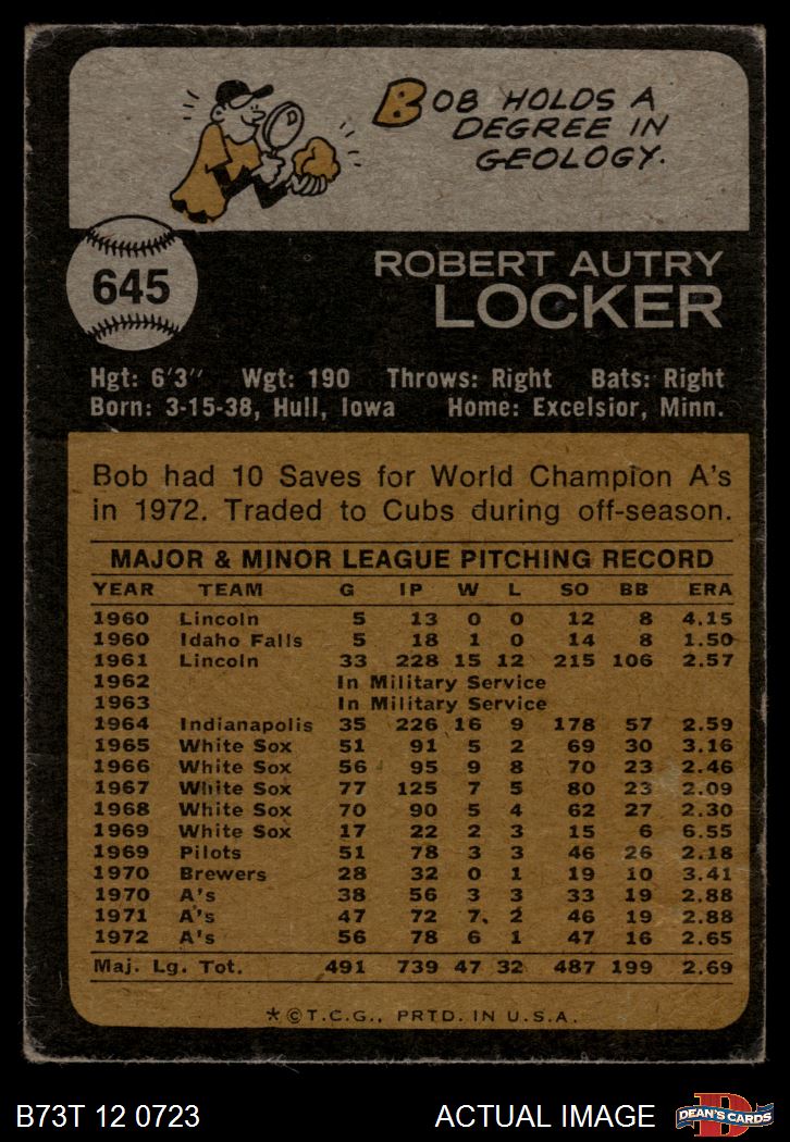 1973 Topps #645 Bob Locker 1.5 - FAIR