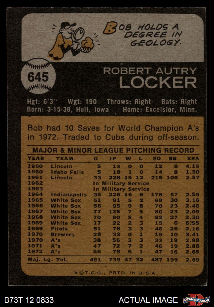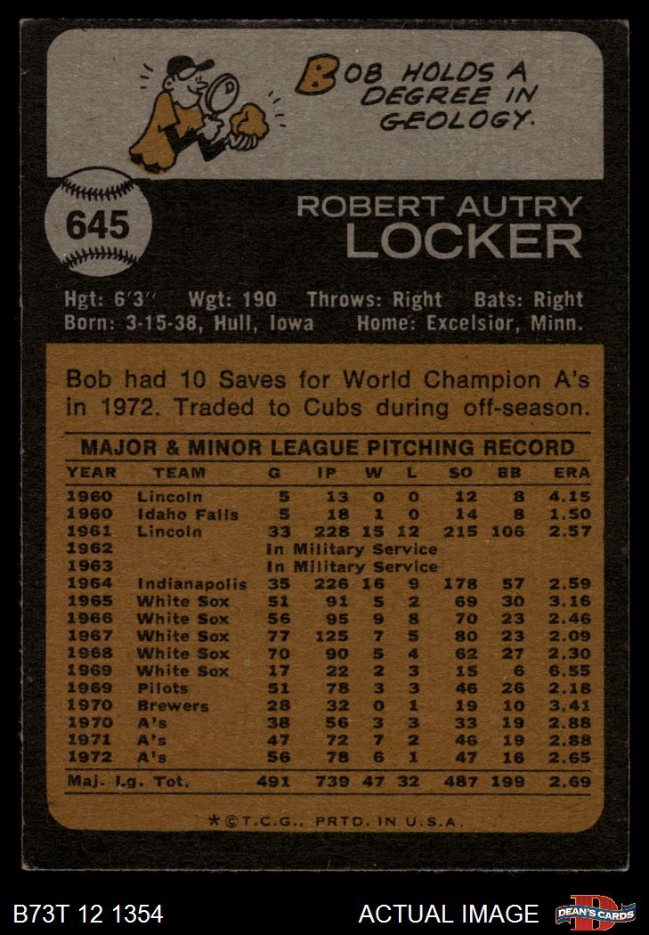 1973 Topps #645 Bob Locker 4 - VG/EX