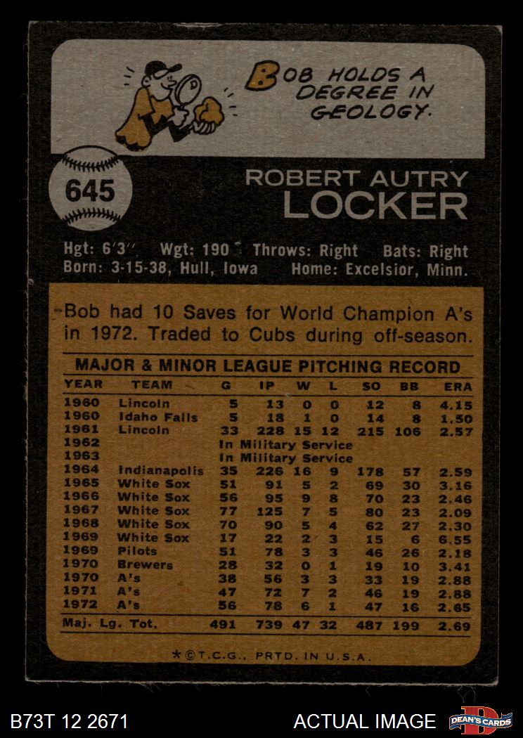 1973 Topps #645 Bob Locker 4.5 - VG/EX+