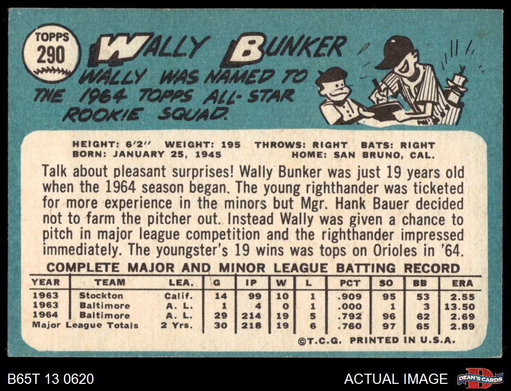 1965 Topps #290 Wally Bunker 3 - VG