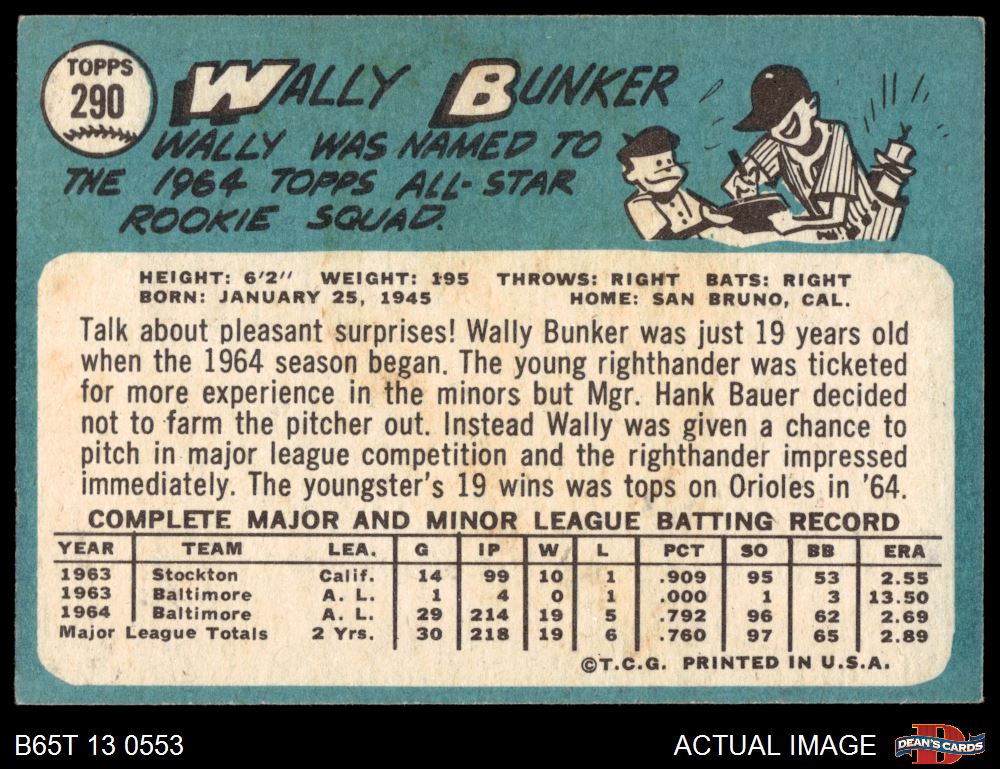 1965 Topps #290 Wally Bunker 3.5 - VG+