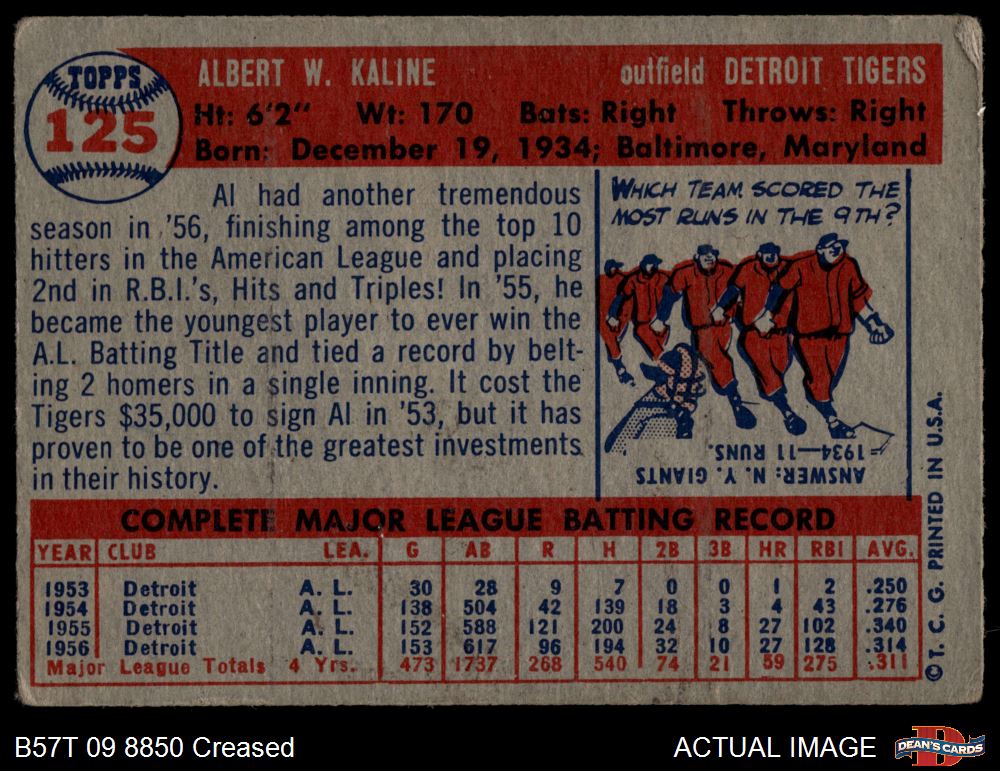 1957 Topps #125 Al Kaline 1.5 - FAIR