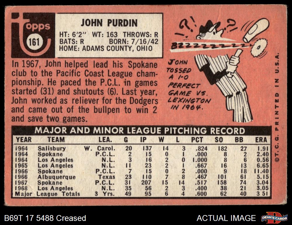 1969 Topps #161 John Purdin 1.5 - FAIR