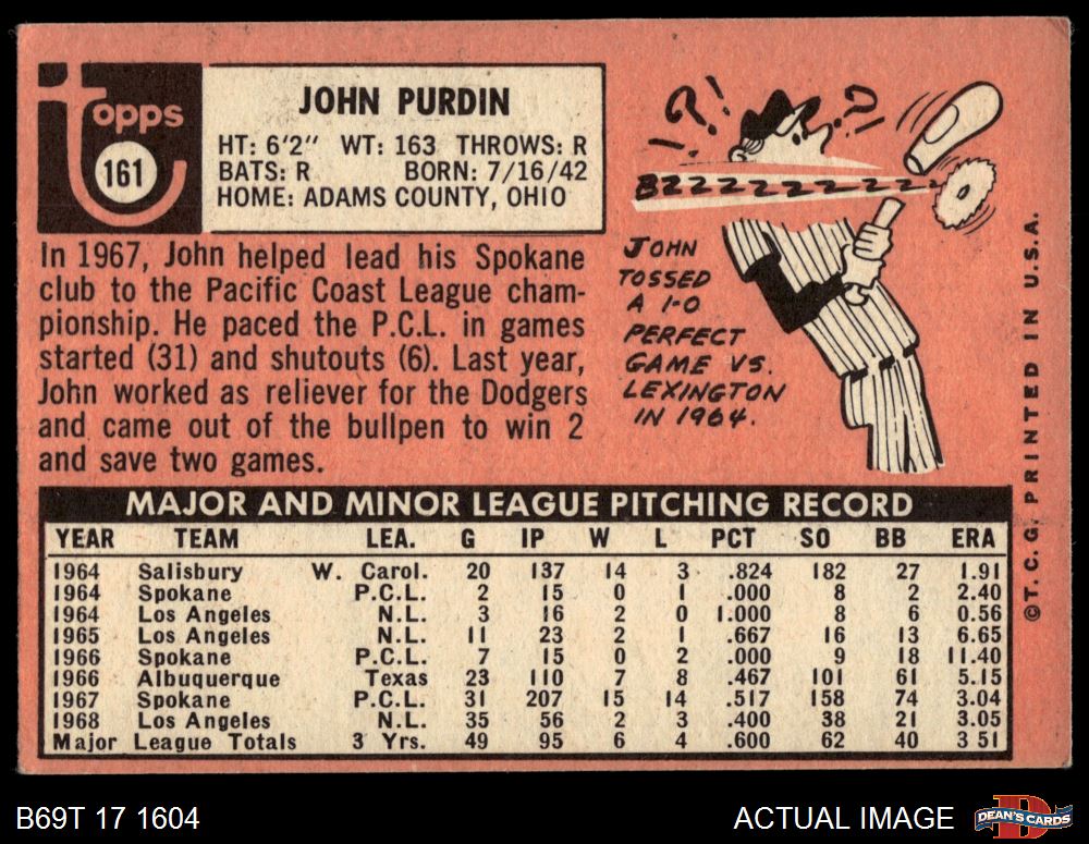 1969 Topps #161 John Purdin