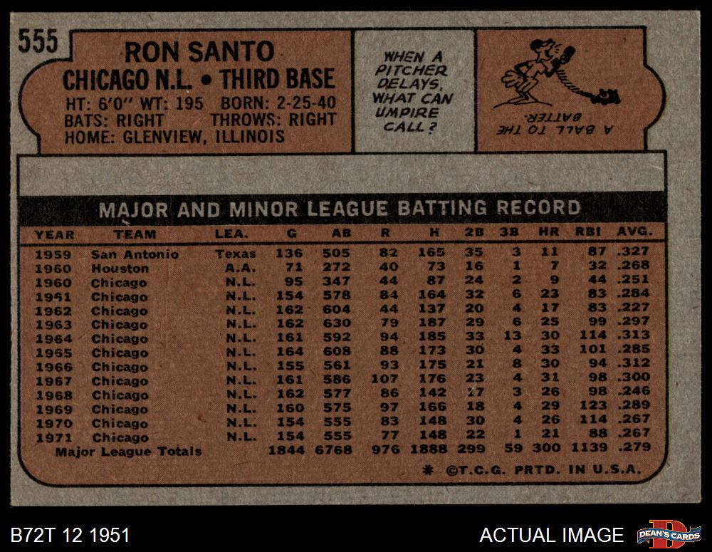 1972 Topps #555 Ron Santo