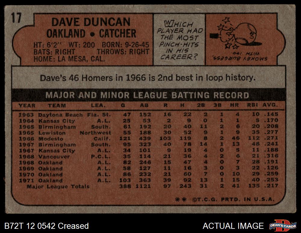 1972 Topps #17 Dave Duncan Front Thumbnail