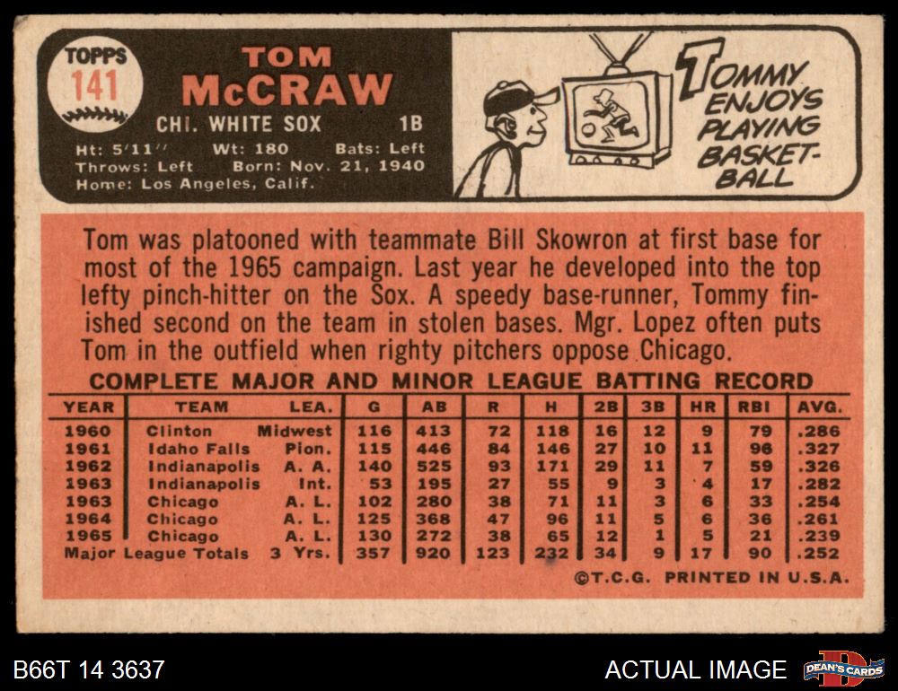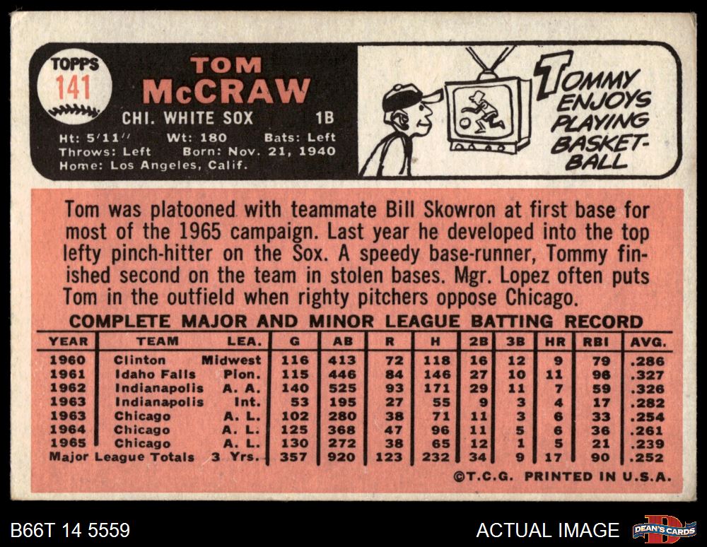 1966 Topps #141 Tom McCraw 3 - VG