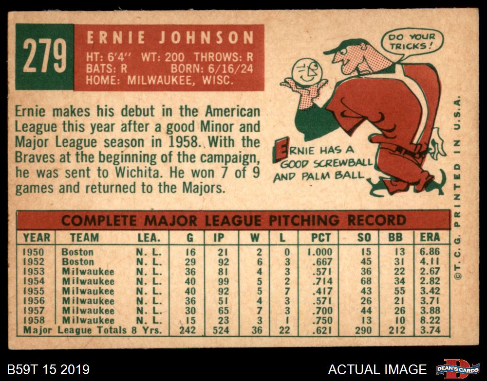 1959 Topps #279 Ernie Johnson 4 - VG/EX