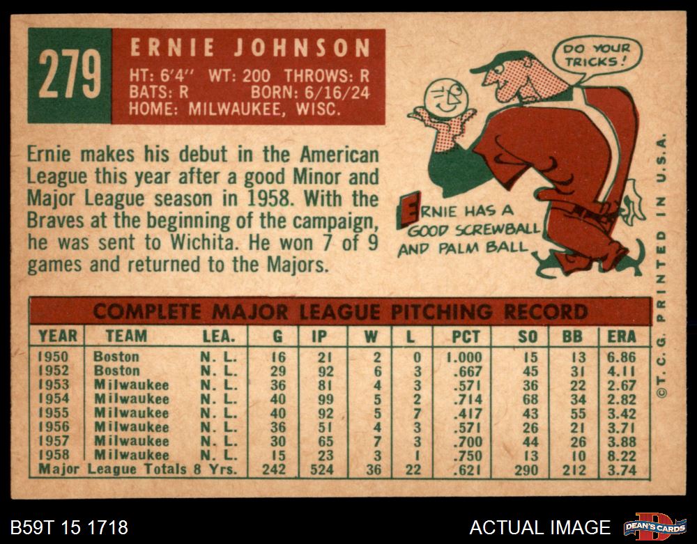 1959 Topps #279 Ernie Johnson 6 - EX/MT