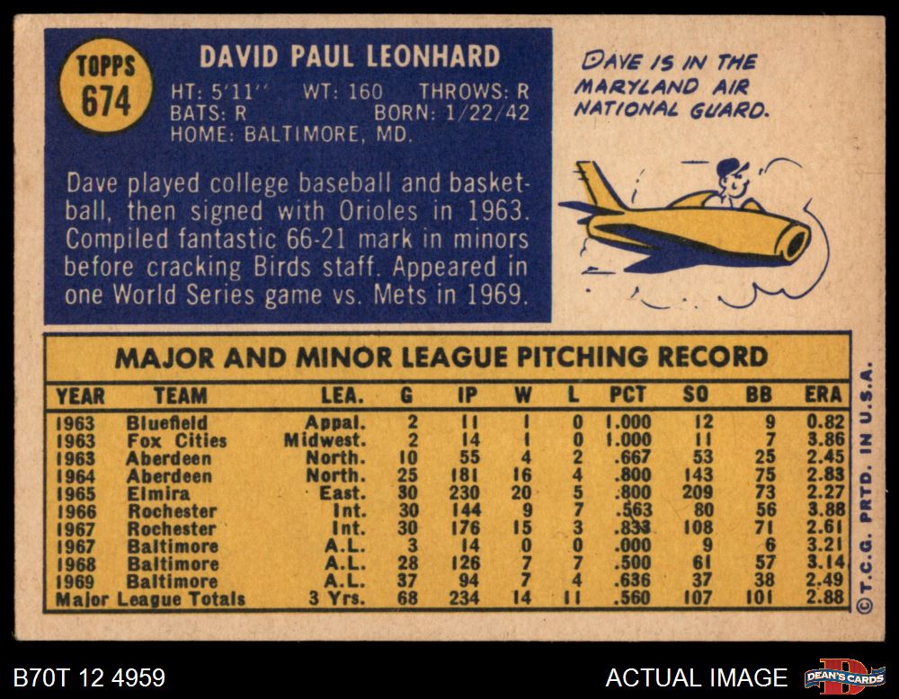 1970 Topps #674 Dave Leonhard 4 - VG/EX