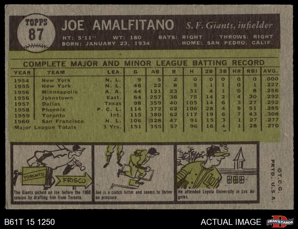 1961 Topps #87 Joe Amalfitano 5 - EX