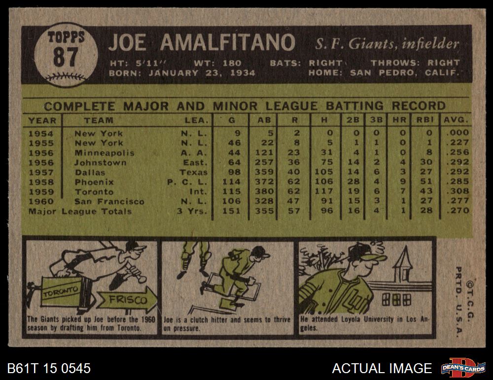 1961 Topps #87 Joe Amalfitano 6 - EX/MT