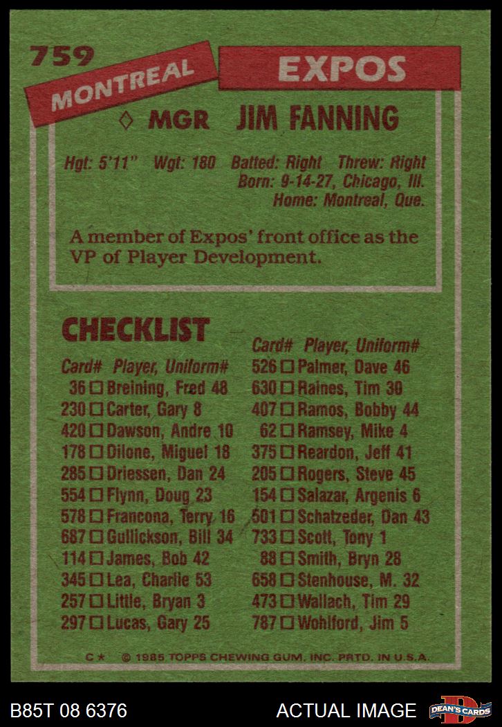 1985 Topps #759 Jim Fanning 6 - EX/MT