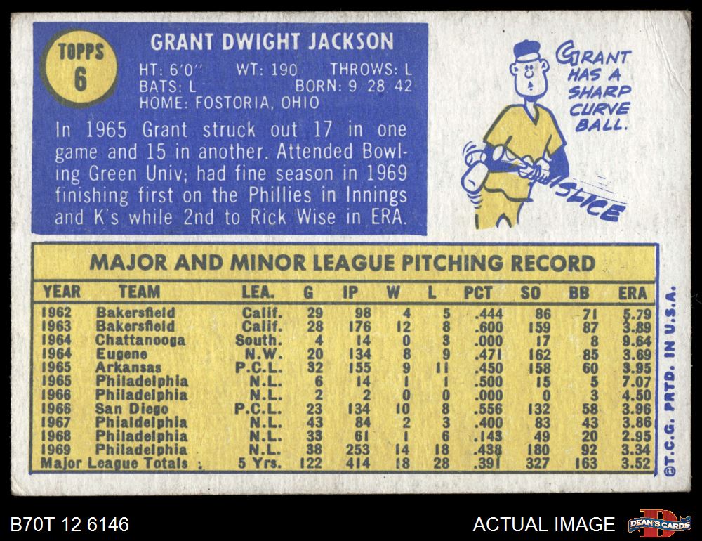 1970 Topps #6 Grant Jackson 4 - VG/EX