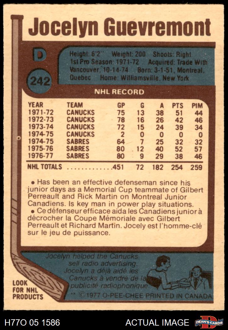 1977 O-Pee-Chee #242 Jocelyn Guevremont