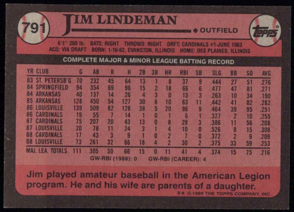 1989 Topps Baseball Cards (4,276 available)1989 Topps Cardinals (278 available)