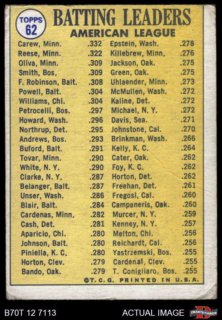 1970 Topps #62 - Rod Carew / Tony Oliva / Reggie Smith AL Batting Leaders 1.5 - FAIR