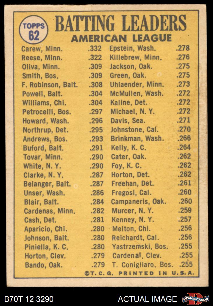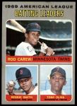 1970 Topps #62 - Rod Carew / Tony Oliva / Reggie Smith AL Batting Leaders 4 - VG/EX