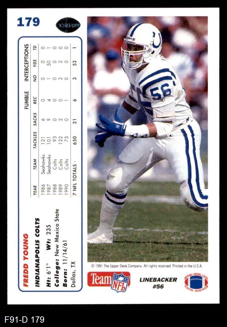 1991 Upper Deck #179 Fredd Young 8 - NM/MT