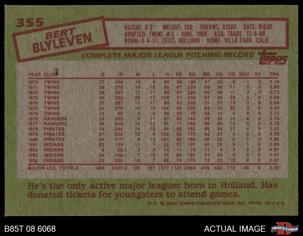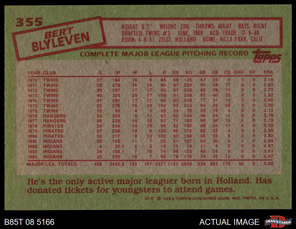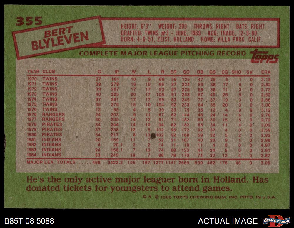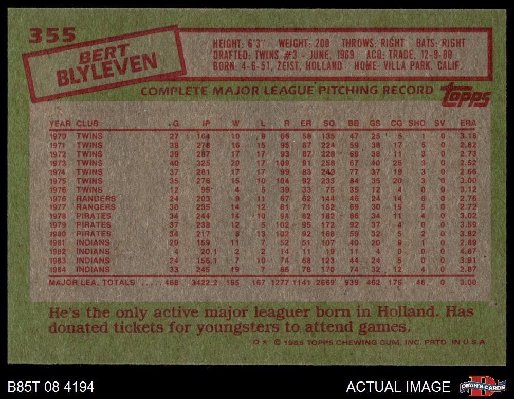 1985 Topps #355 Bert Blyleven