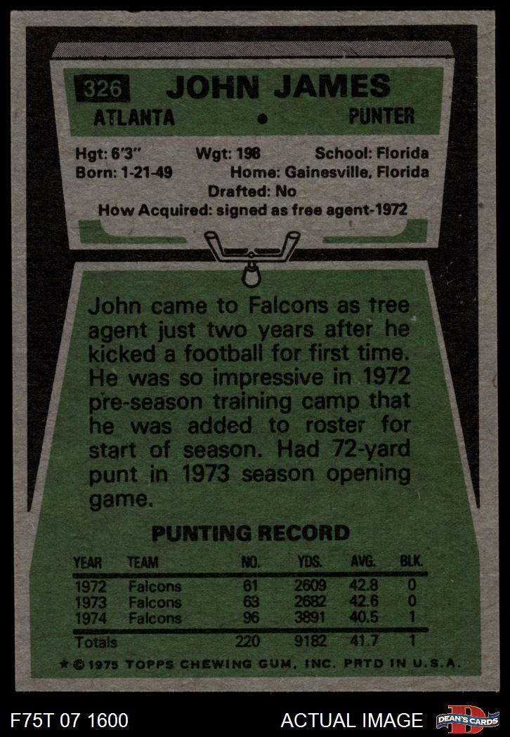 1975 Topps #326 John James 7 - NM