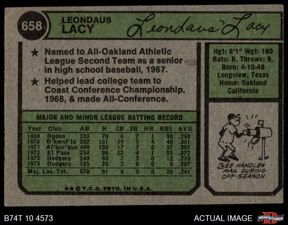 1974 Topps #658 Lee Lacy 4 - VG/EX