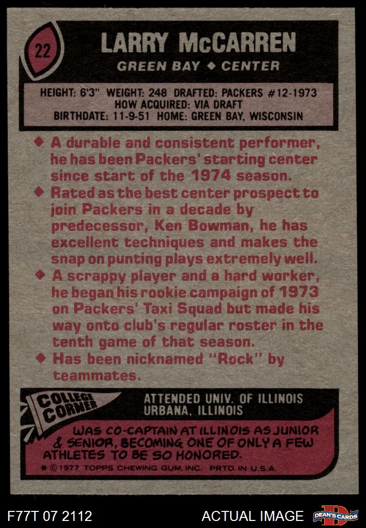1977 Topps #22 Larry McCarren 7 - NM