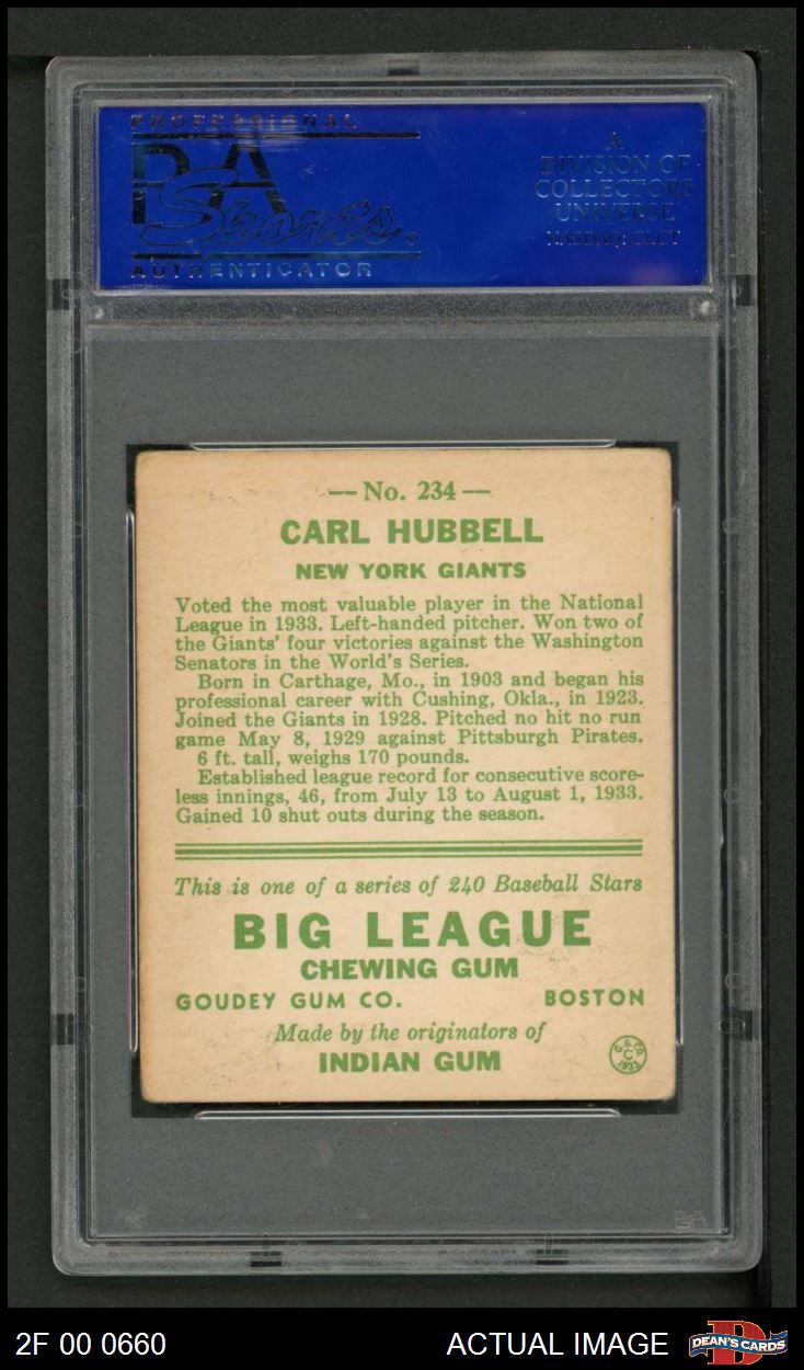 1933 Goudey #234 Carl Hubbell PSA 4 - VG/EX