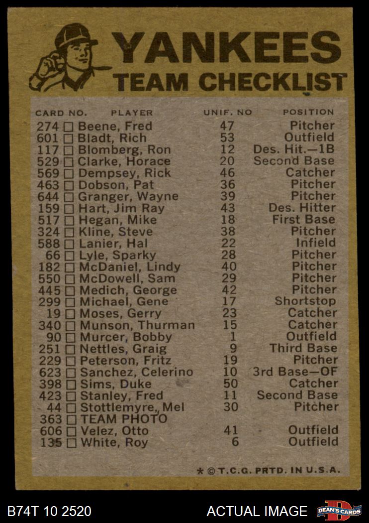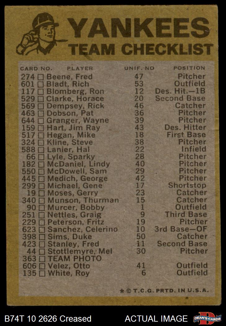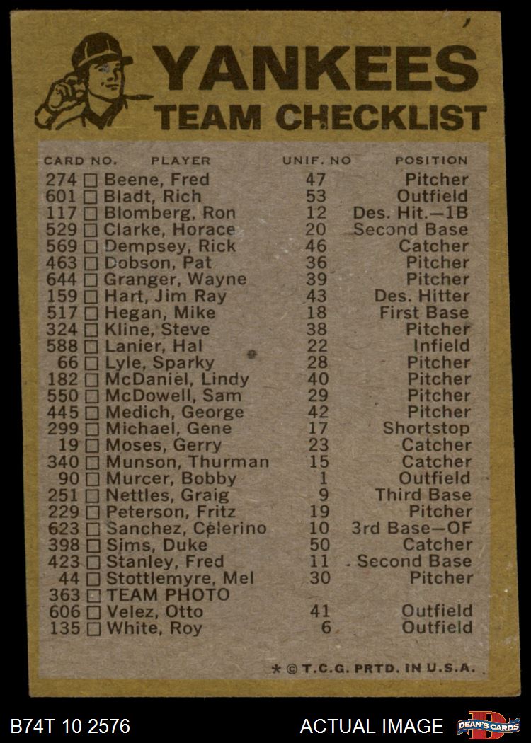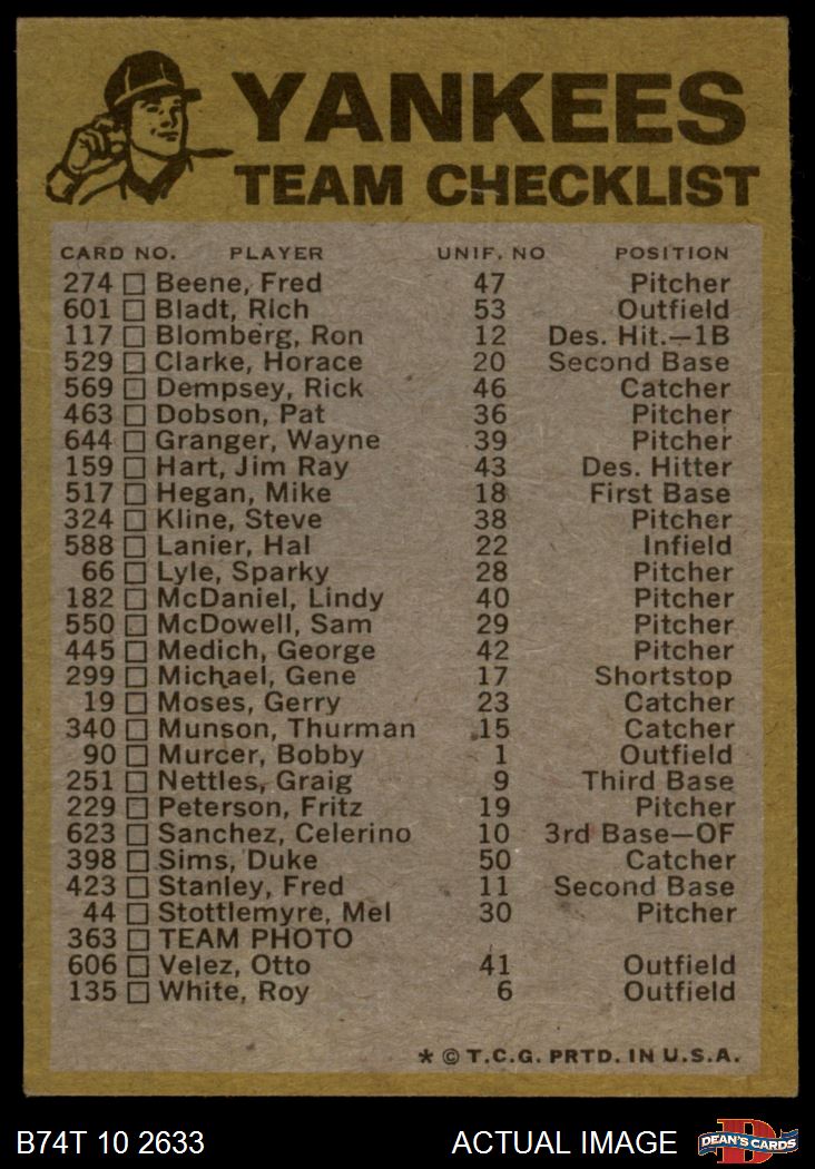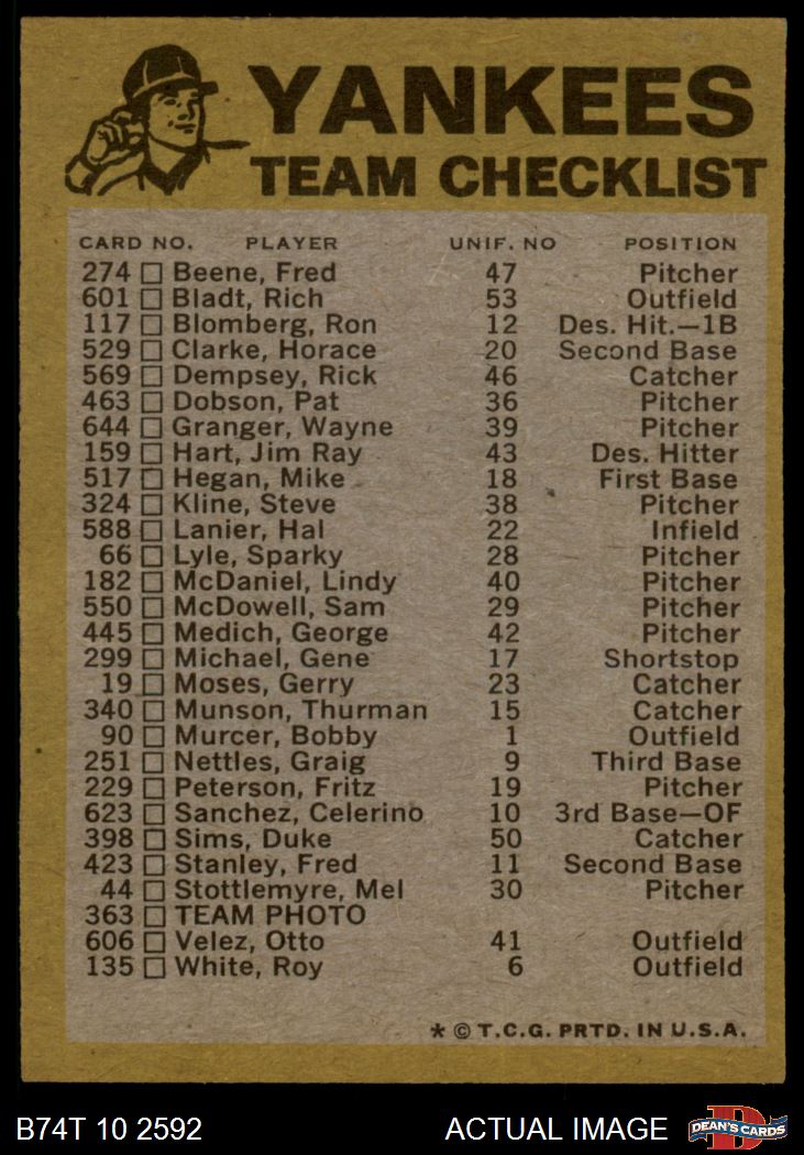 1974 Topps Baseball Cards (15,915 available)1974 Topps Red Team Checklist Yankees (22 available)