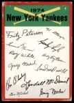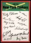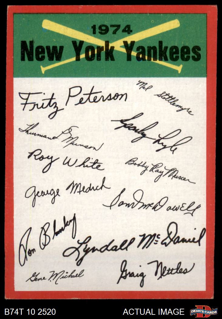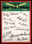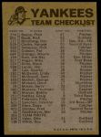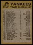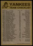 1974 Topps Red Team Checklist New York Yankees Red Team Checklist