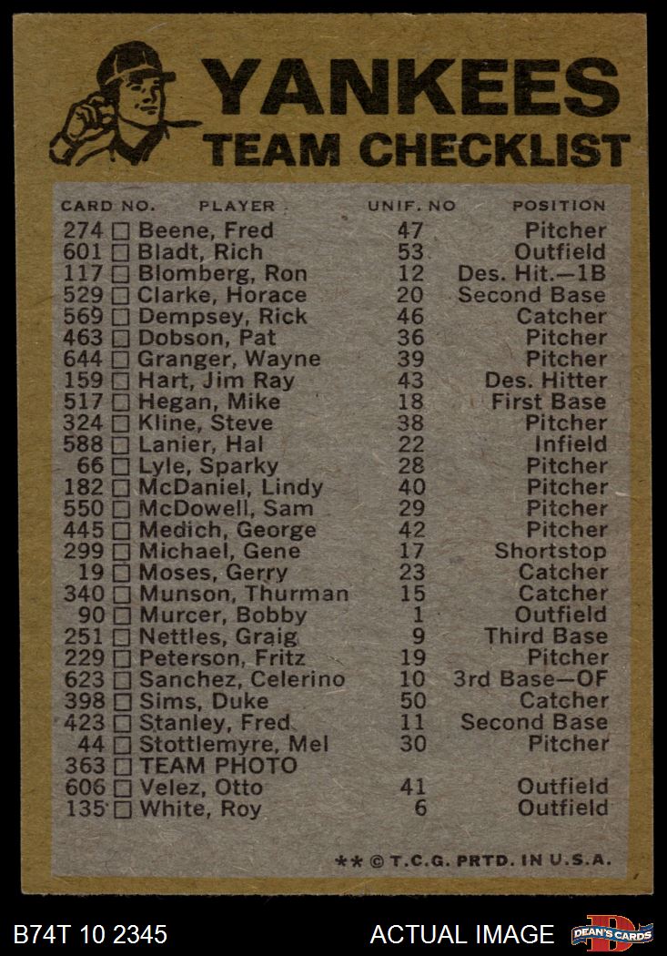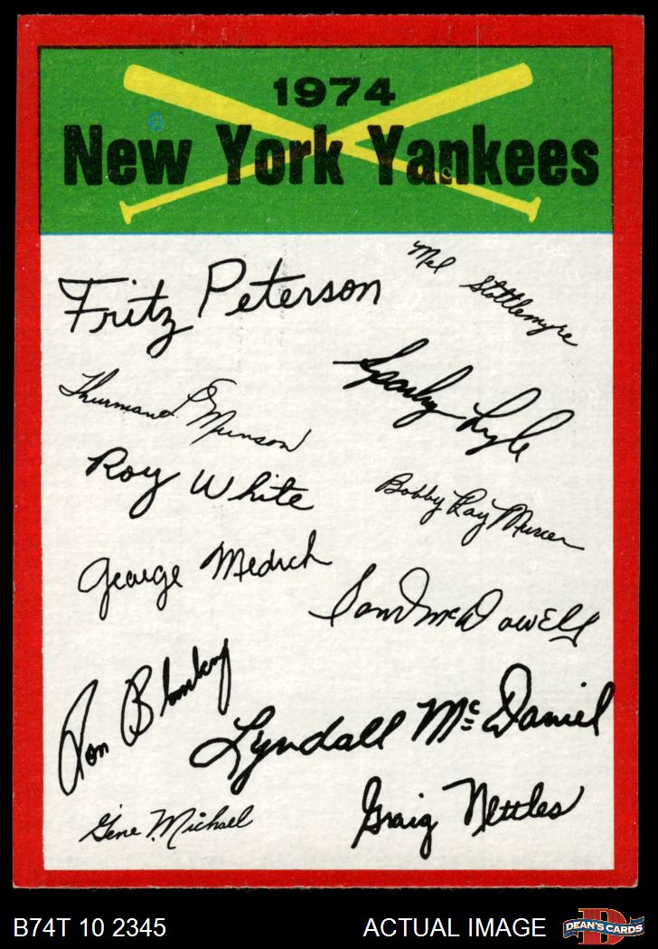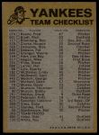 1974 Topps New York Yankees Red Team Checklist 6 - EX/MT