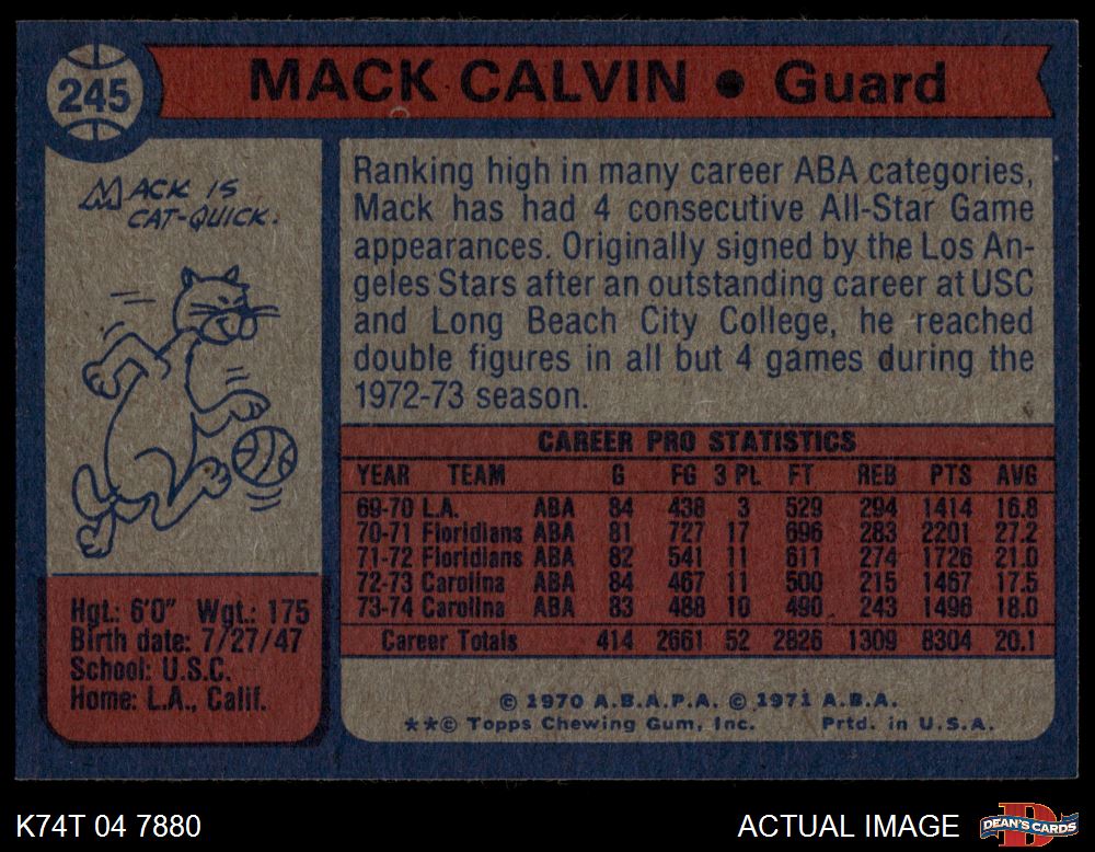 1974 Topps #245 Mack Calvin 7.5 - NM+