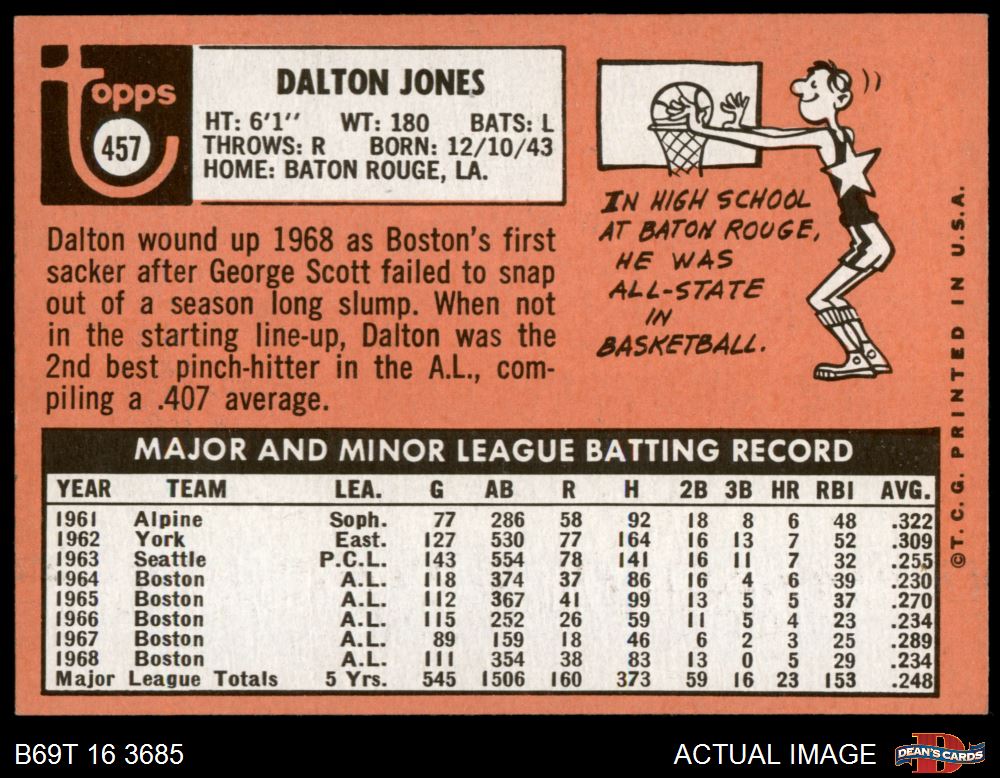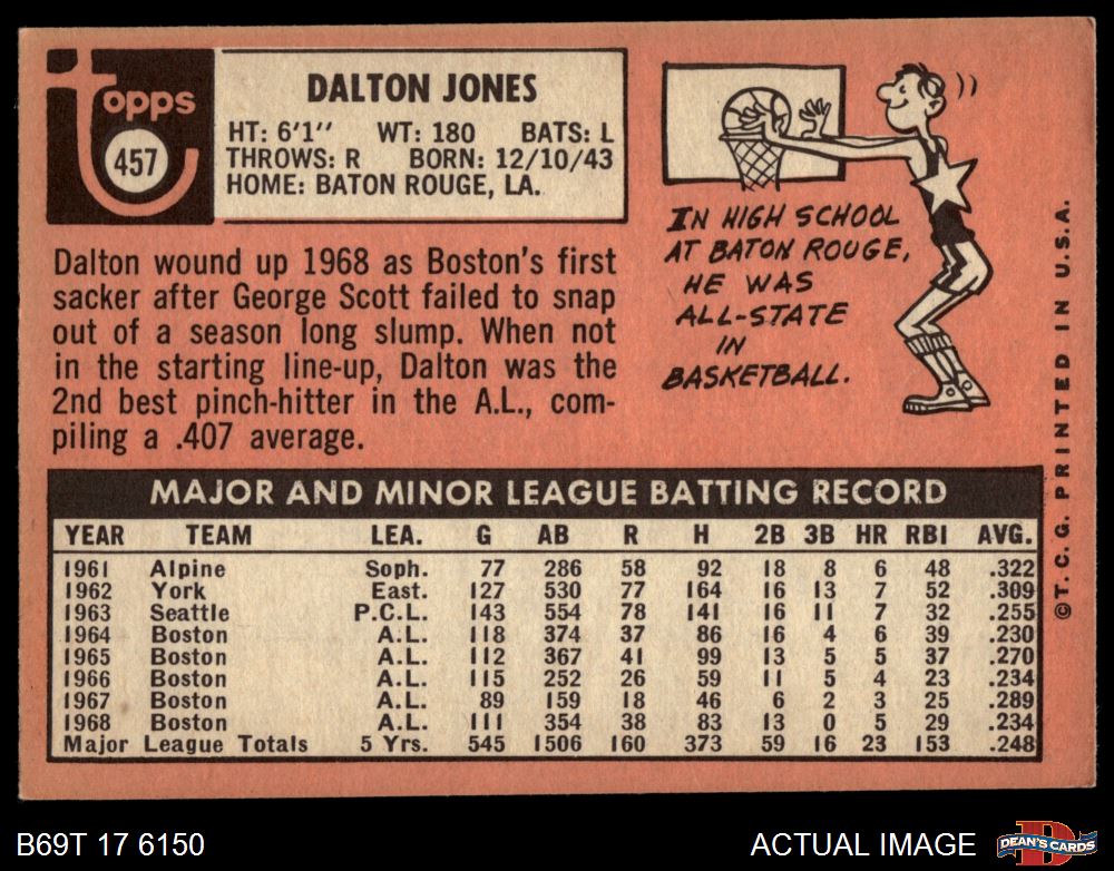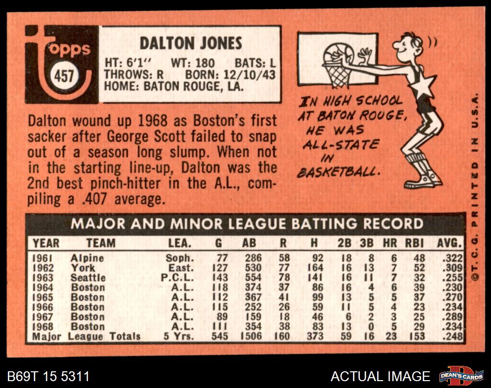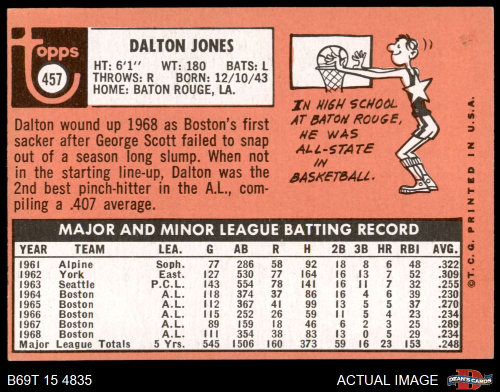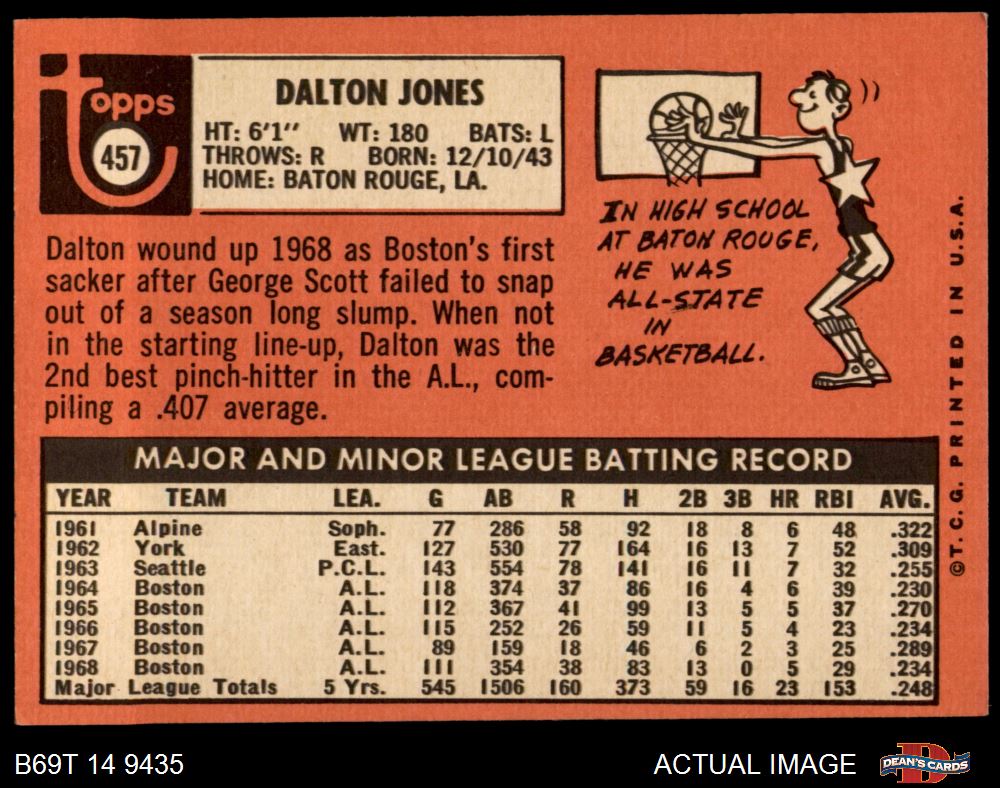 1969 Topps #457 Dalton Jones 6 - EX/MT