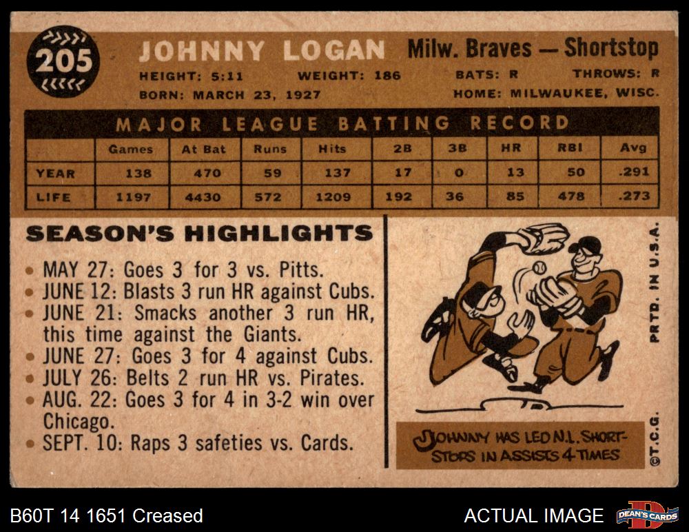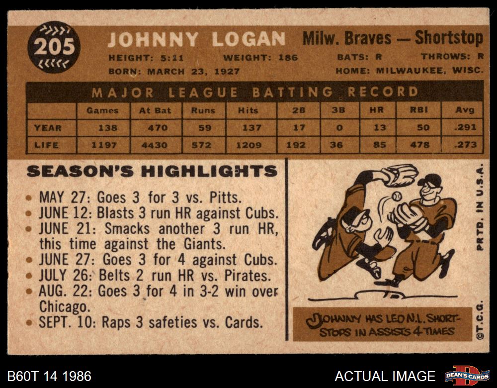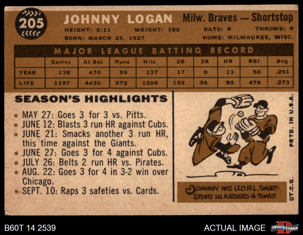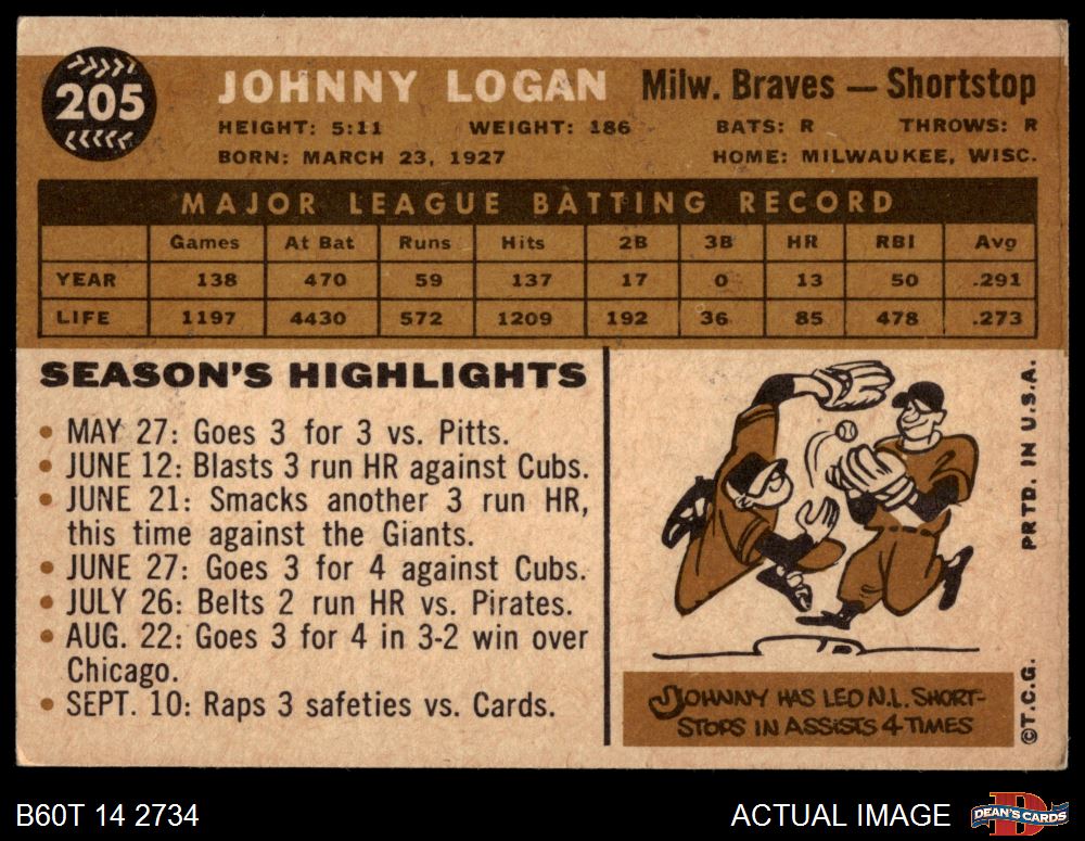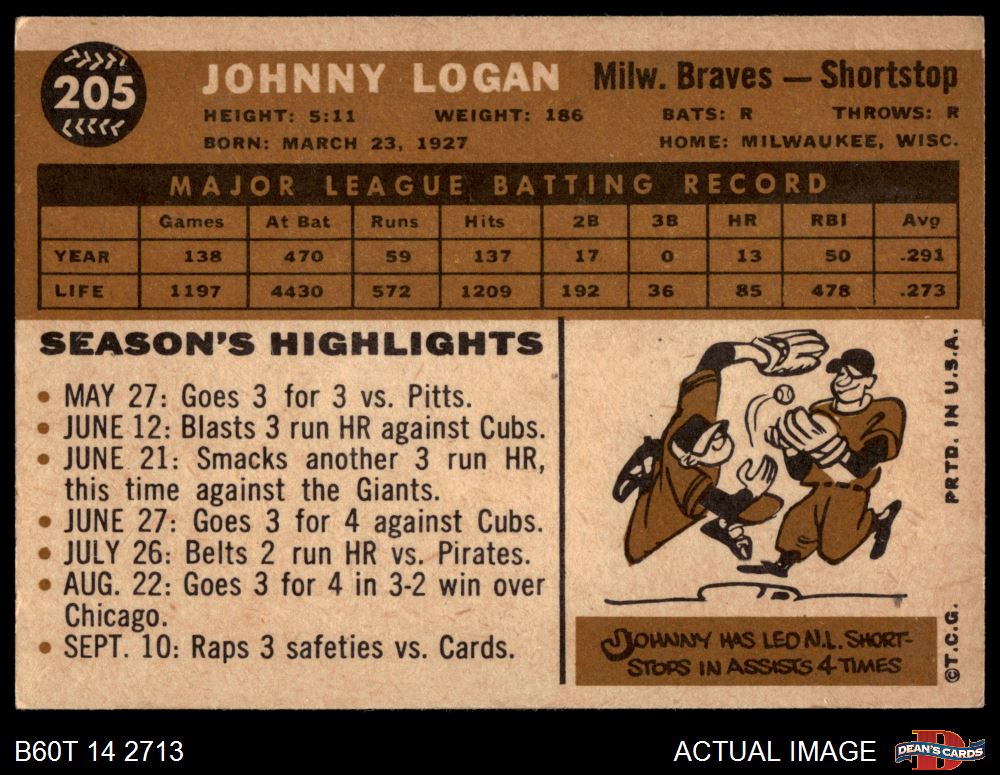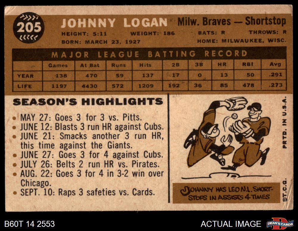 1960 Topps #205 Johnny Logan